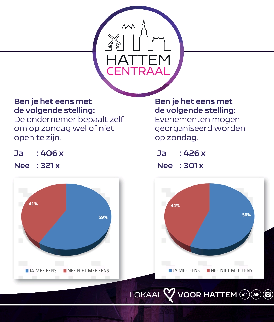 De enquête van HattemCentraal die is uitgezet is onder 1500 Hattemers heeft interessante resultaten opgeleverd. 59 procent van de respondenten, wat neerkomt op 406 Hattemers, is van mening dat ondernemers zelf mogen beslissen of ze op zondag open zijn.